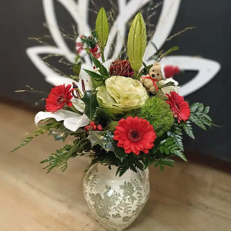 Offrez la magie de Noël avec le « Bouquet Joyeux Noël », une création qui capture l’essence de la féerie festive, pour illuminer chaque intérieur avec élégance et convivialité.